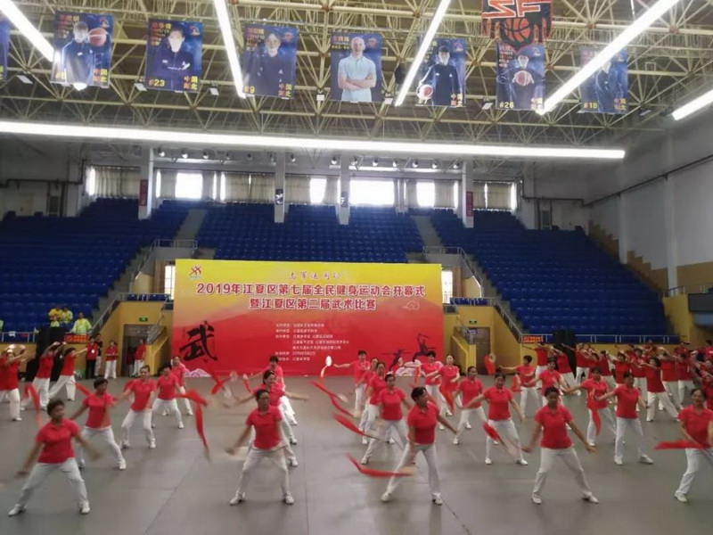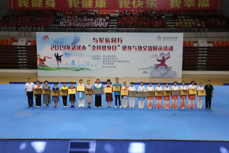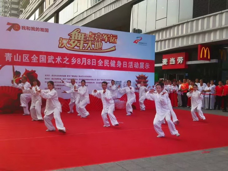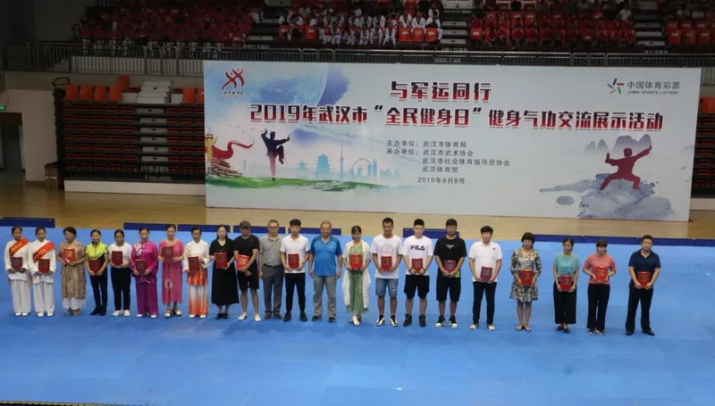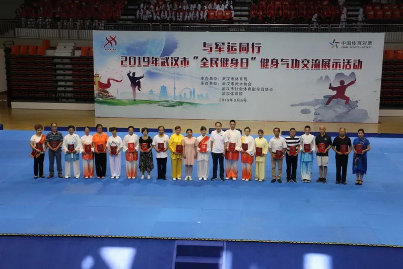 主办,武汉市武术协会、武汉市社会体育指导员协会和武汉体育馆承办的“与军运同行”2019年“健康武汉你我同行”全民健身日展示活动拉开序幕。