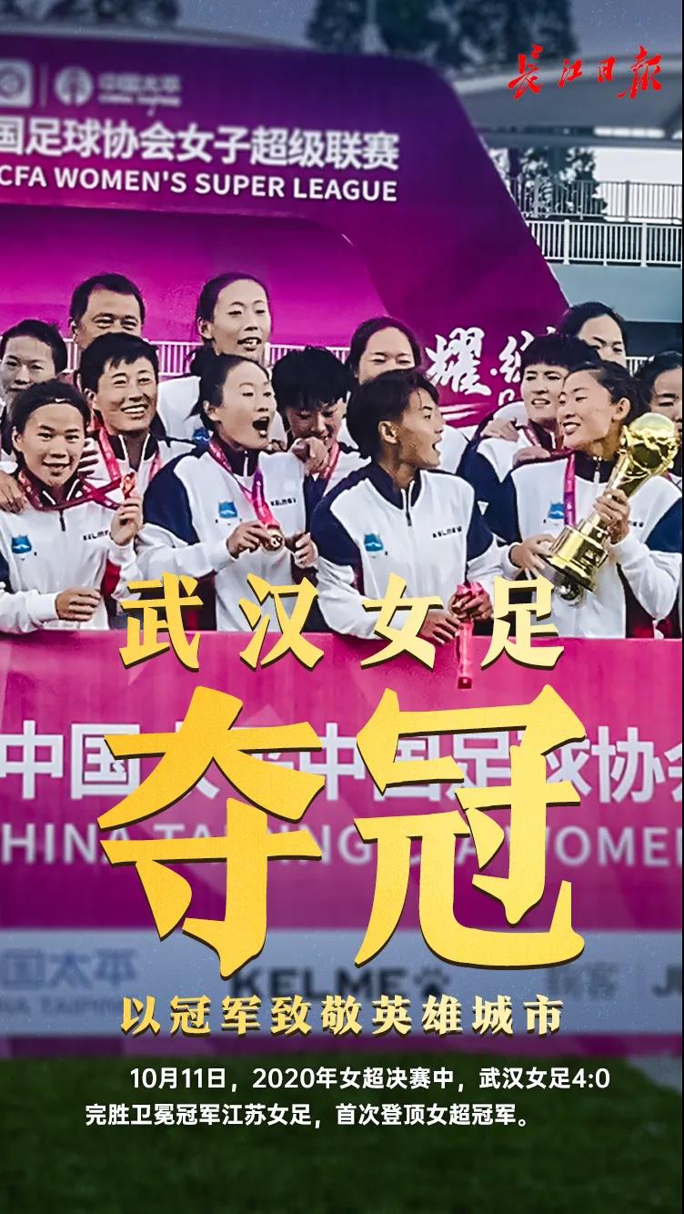 刚刚在2020赛季女超决赛中武汉女足4:0大胜江苏女足首次登顶女超冠军这是中国足球职业化27年以来武汉足球拿到的首个顶级联赛冠军