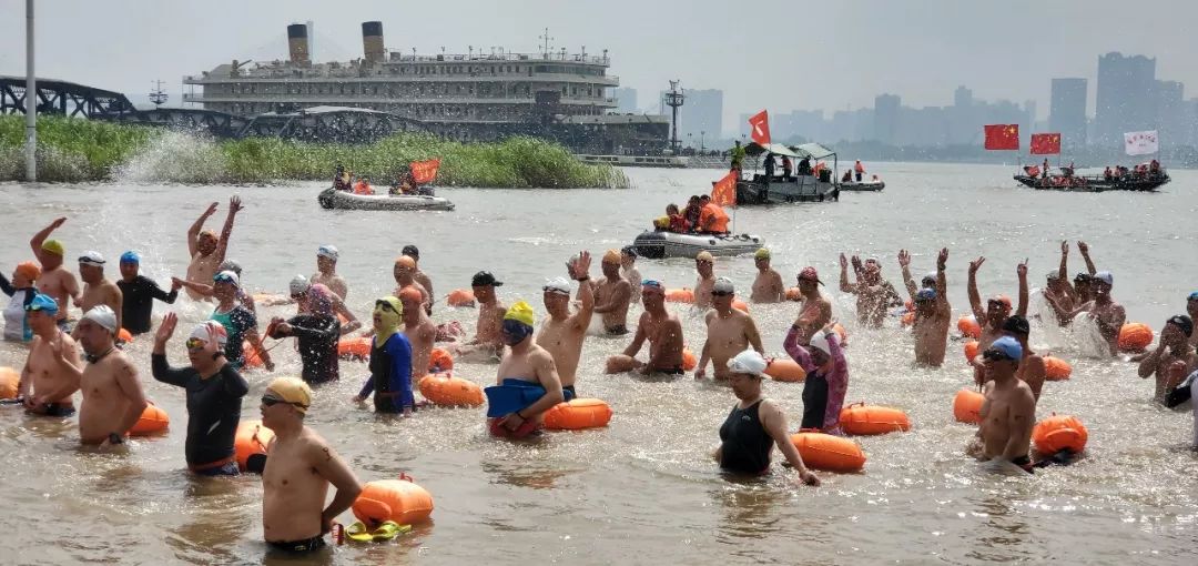 王沈顺局长在发布会介绍,7月12日上午9:15,渡江节试渡在武昌汉阳门下水点鸣枪开始,20名运动员入水,最终17名选手成功登岸(男子最好成绩13分35秒、女子最好成绩14分20秒),其他3名选手均因在关门时间内无法登岸,被救助起水。
