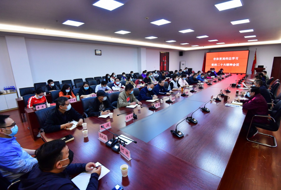 10月26日,动漫岛 召开全局干部大会,传达学习党的二十大精神。市体育局领导班子成员,各处室、各直属单位主要负责人参加了会议。市体育局党组书记、局长雷利军主持会议并讲话。