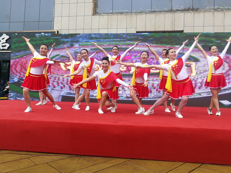 6月22日,塔子湖街道越秀社区文化广场上锣鼓喧天,彩旗招展,“科技改变生活 创新圆梦强国”主题文艺汇演拉开了系列庆祝活动的序幕,由市体育局机关志愿服务队带去的健身排舞《中国同心圆》获得社区群众的阵阵掌声。