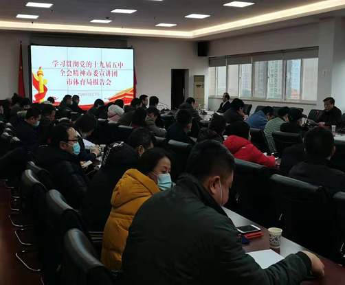 局党组书记、局长王沈顺就深入贯彻落实党的十九届五中全会精神,努力开创武汉体育事业发展新篇章作形式政策教育报告,要求广大党员干部真正在学懂弄通做实上下功夫,把智慧和力量凝聚到落实全会确定的各项目标任务上来,根据党中央部署和省委、市委要求,不忘初心、牢记使命,立足岗位,求真务实,努力推进体育事业高质量发展,用奋斗谱写“十四五”新篇章。