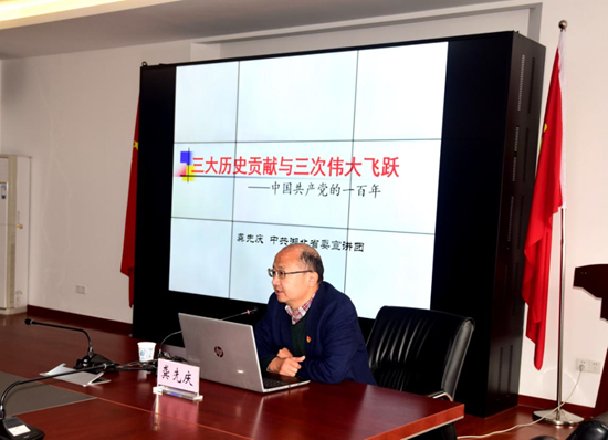 围绕中国共产党在百年发展历程中,面对各种风险挑战,历经艰辛探索,付出巨大牺牲,带领中华民族站起来、富起来、强起来的伟大成就这一学习主线,龚先庆全面宣讲了中国共产党为国家和民族作出的伟大贡献,中国共产党推进马克思主义中国化形成的重大理论成果。