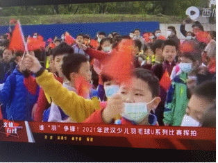 3月27日至28日,武汉市乒羽网中心举办的谁“羽”争锋2021年武汉市少儿羽毛球U系列比赛加入了“学四史跟党走 我的青春正当红”等主题元素,在喜迎建党百年时刻,简短的开幕仪式呈现温情一刻,一位小选手缓缓入场,小提琴演奏“我和我的祖国”,童声演唱“我爱你中国”歌曲时,现场所有运动员、裁判员和家长齐声高唱,在深情洪亮的歌声中向远方鲜艳的国旗行注目礼,旨在教育小选手热爱运动更要热爱党热爱国家。