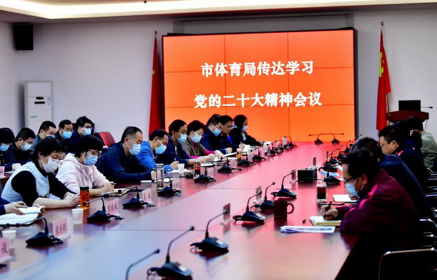 10月26日,动漫岛 召开全局干部大会,传达学习党的二十大精神。市体育局领导班子成员,各处室、各直属单位主要负责人参加了会议。市体育局党组书记、局长雷利军主持会议并讲话。
