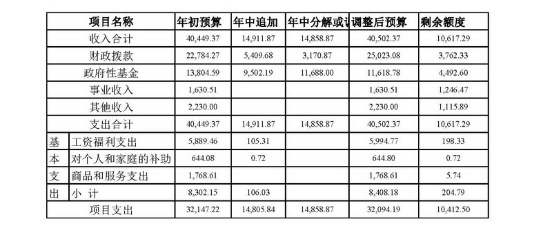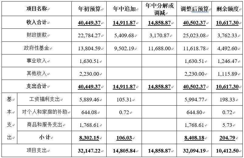 调整后预算总支出40,502.37万元,其中:基本支出8,408.18万元、项目支出32,094.19万元。