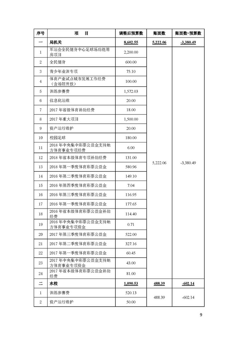 全额补助事业单位分别为:武汉市体育运动学校、武汉市体工队、武汉市少年儿童体育学校、武汉市射击运动学校、武汉市水上运动学校、武汉市社会体育指导中心、武汉市体育科学研究所、武汉市足球运动管理中心、武汉市田径运动管理中心及武汉市全民健身中心;