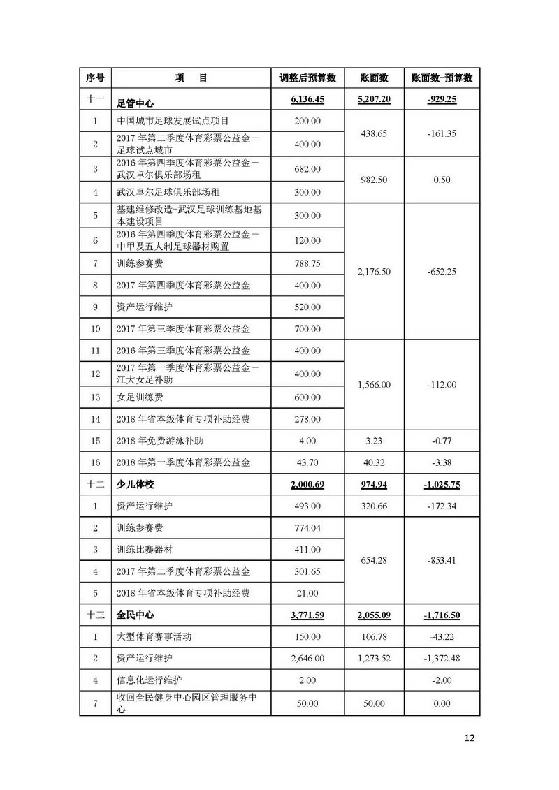 (2)市体育局下属12个纳入部门决算的事业单位,其中:全额补助事业单位10个、差额补助事业单位2个,具体包括: