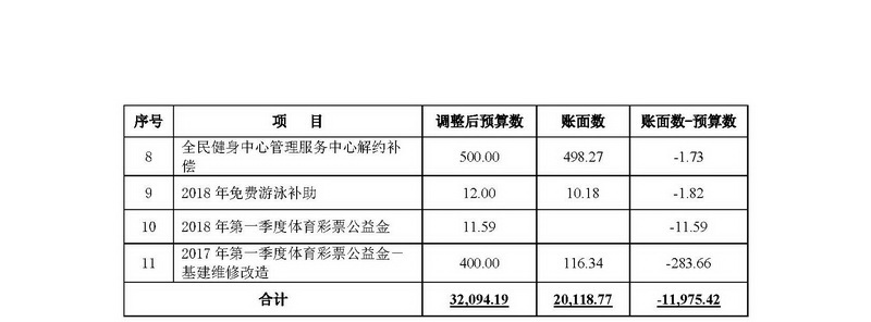 差额补助事业单位分别为:武汉体育馆、武汉市合作路体育馆。