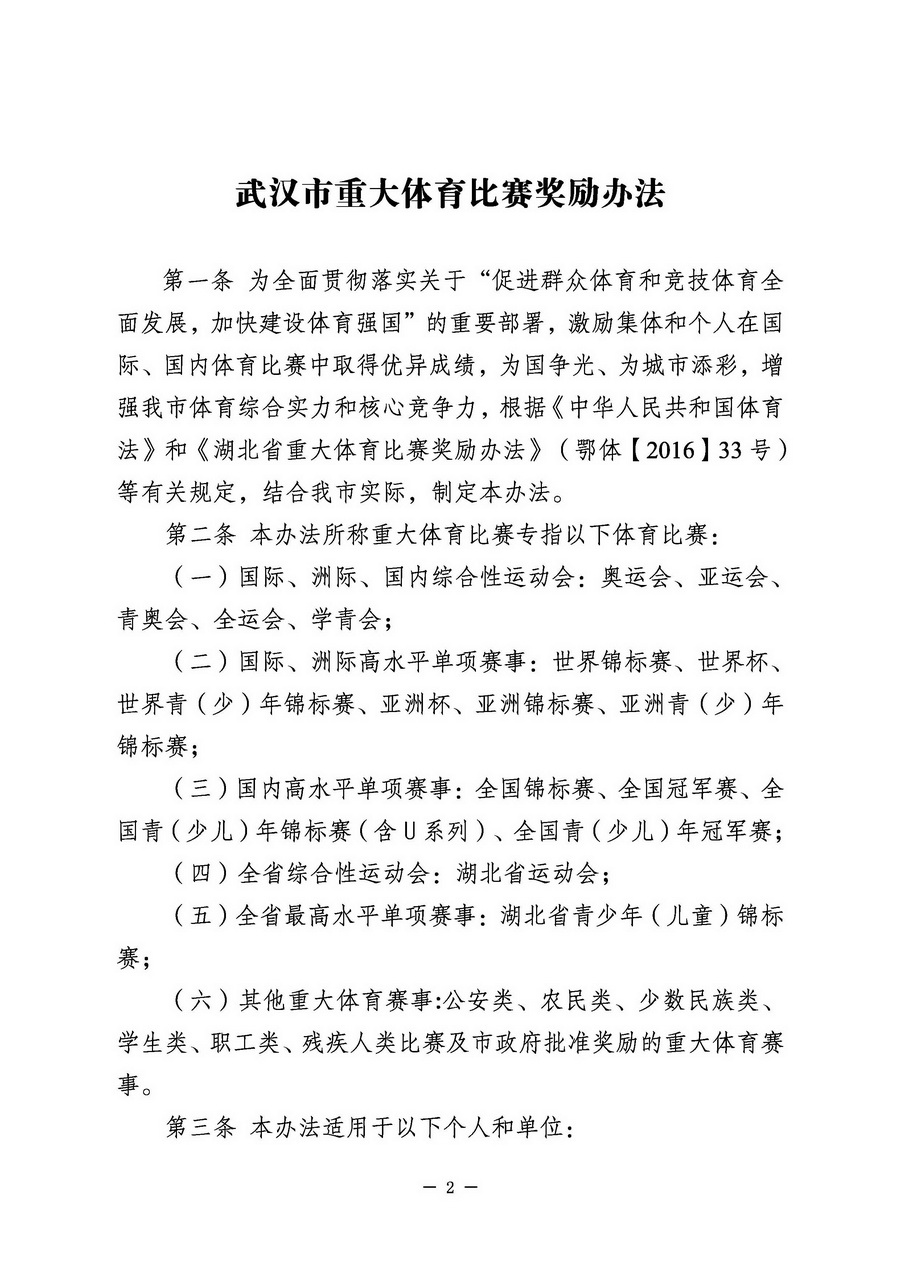 关于《武汉市重大体育比赛奖励办法》的政策解读