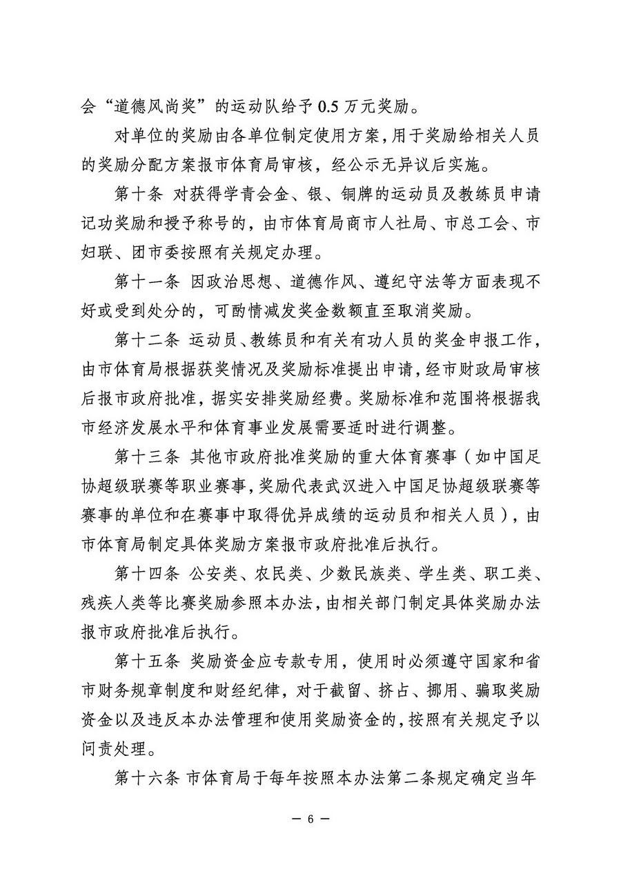 《武汉市重大体育比赛奖励办法》武体规[2023]1号