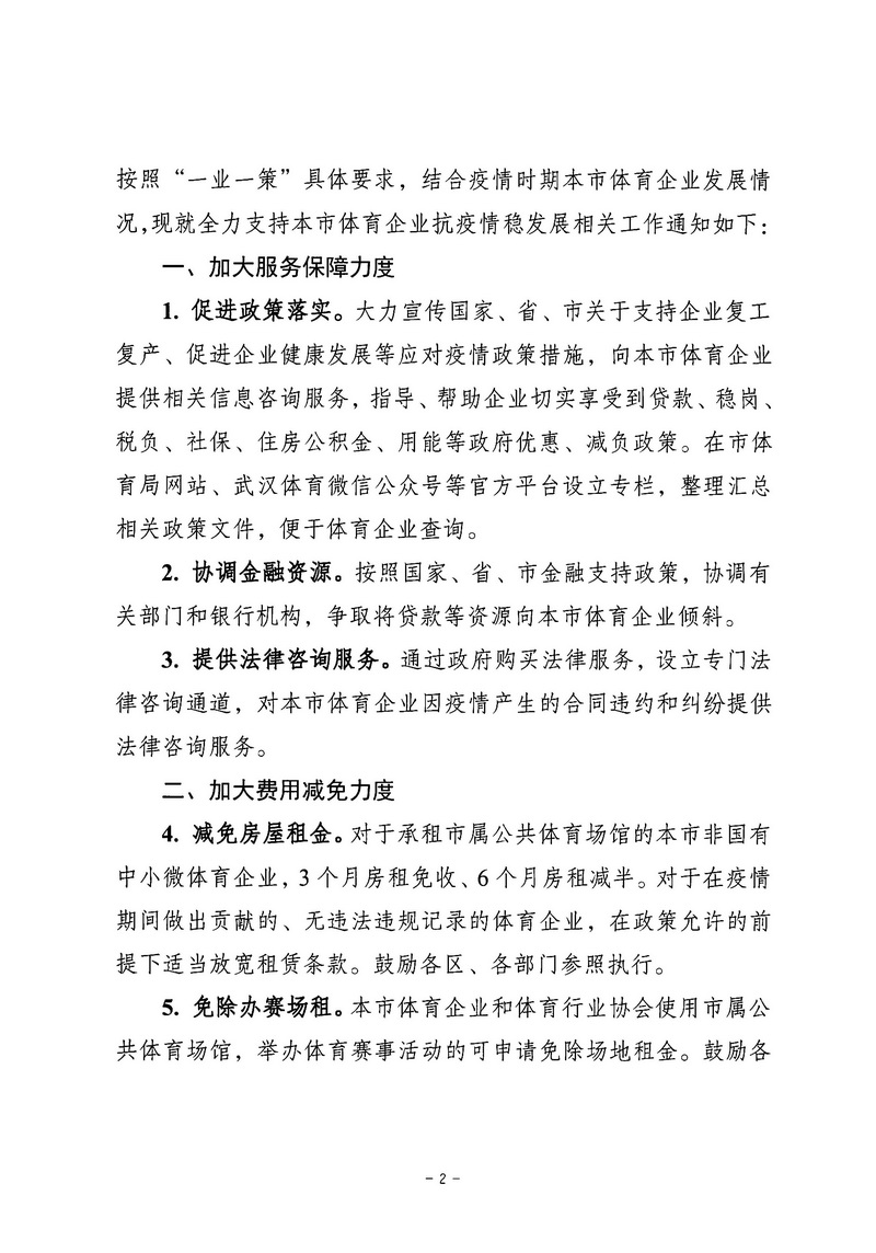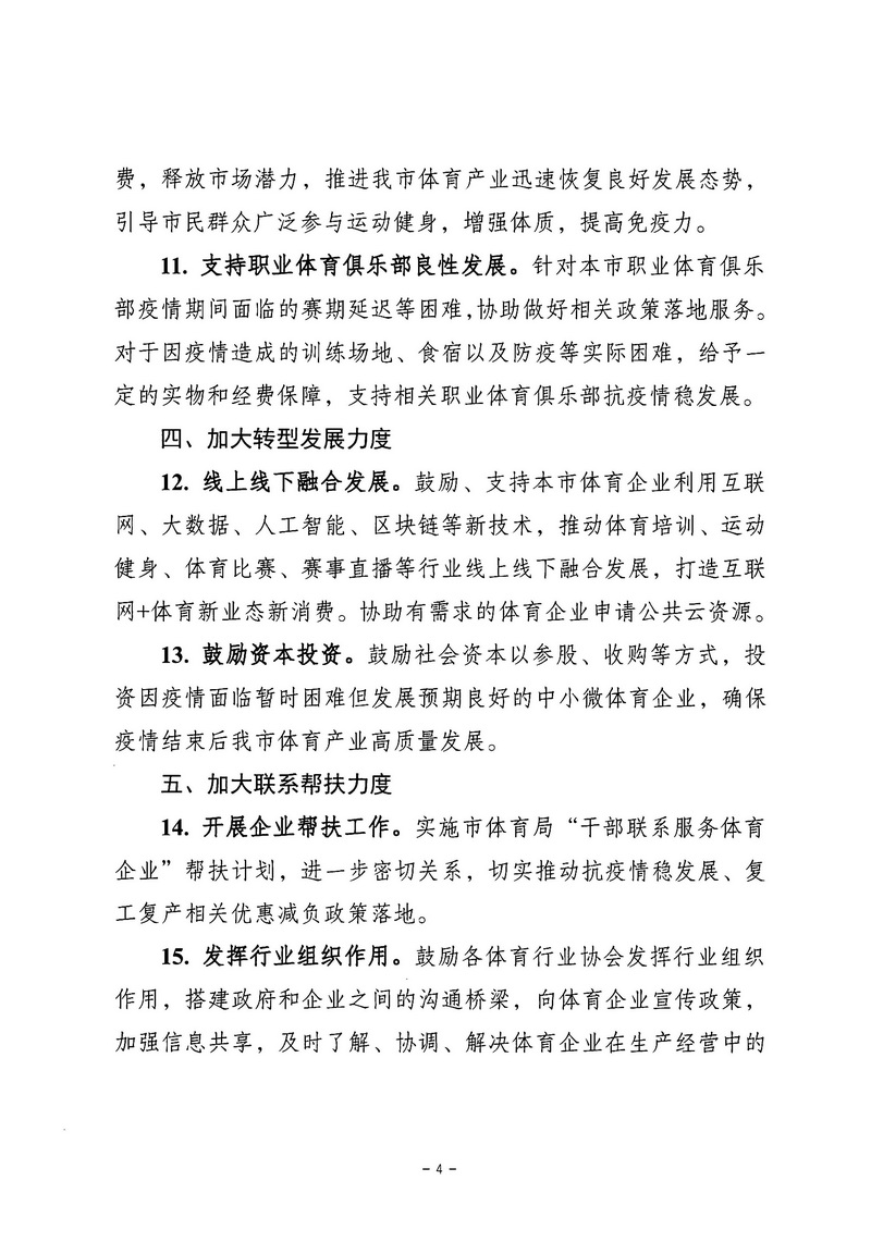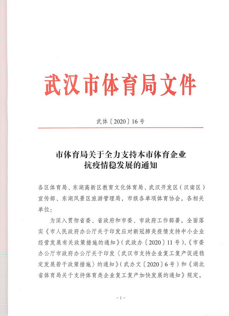 市体育局关于全力支持本市体育企业抗疫情稳发展的通知