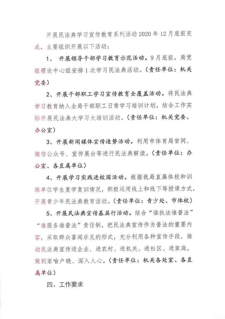 关于印发《市体育局开展民法典学习宣传教育系列活动实施方案》的通知