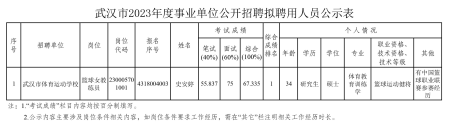 以上公示期为2023年7月4日至7月10日。公示期内,如对以上人员有异议,可向市体育局政治处反映。市体育局政治处联系电话:027-85578029,联系人:殷鸿、覃莫以。