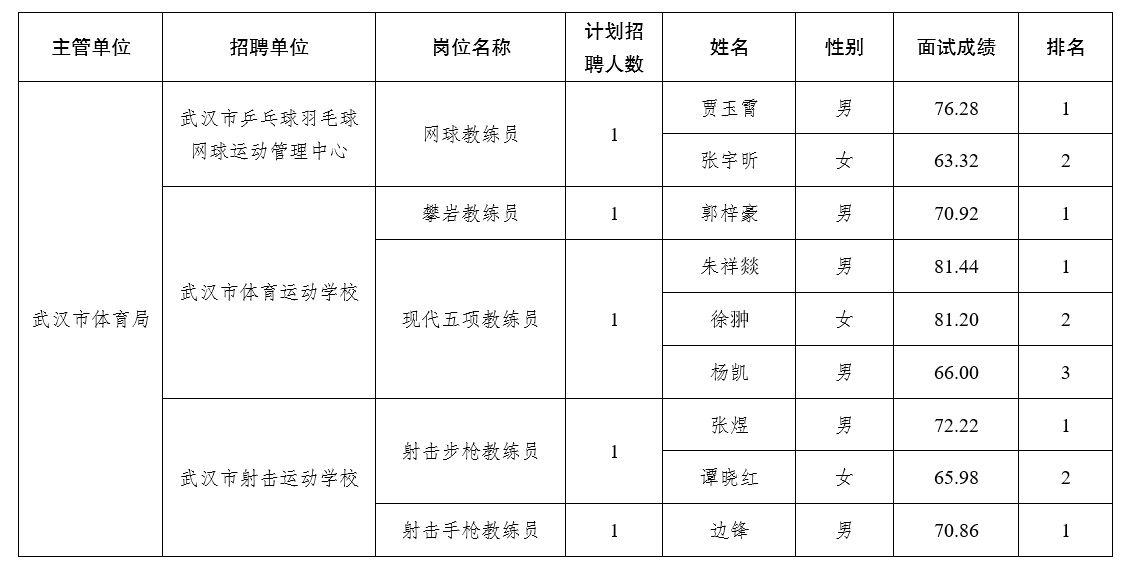 现将动漫岛 2024年面向湖北省退役运动员专项公开招聘面试成绩予以公布。